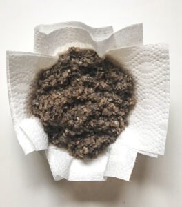 - Step two: Pile on the duxelles filling. You will want it to be a thick layer - about an ยฝ inch thick or more.