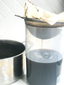 - Strain into a pitcher using a fine mesh strainer lined with paper towels (or cheese cloth, but I find paper towels effective and cheaper).