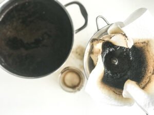 - In a large pot add in your coffee grounds and cold water. Stir to combine.