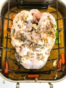 RESTING – Once your turkey breast reaches 165F and the juices run clear, it’s time to take it out of the oven and let it rest. Resting is very important, during the cooking process, juices are pushed to the edges of the meat, resting allows for them to redistribute evenly throughout making each bite juicy. Resting time should be 1/3 of the amount of time the meat cooks, so for this turkey breast recipe I would rest it for 45 minutes.
