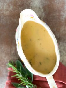Pan Drippings – Pan drippings have a lot of flavor, especially if you filled the cavity of the bird with aromatics (herbs, onions, fruit, etc). There is also a lot of fat. To keep your gravy from getting super greasy, you will need to scoop the fat out (easy tips and instructions below).