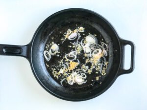 Butter, Shallot, Garlic To start the hash, I combined these classic ingredients to be the base of the flavors. Together they make your kitchen smell like heaven.