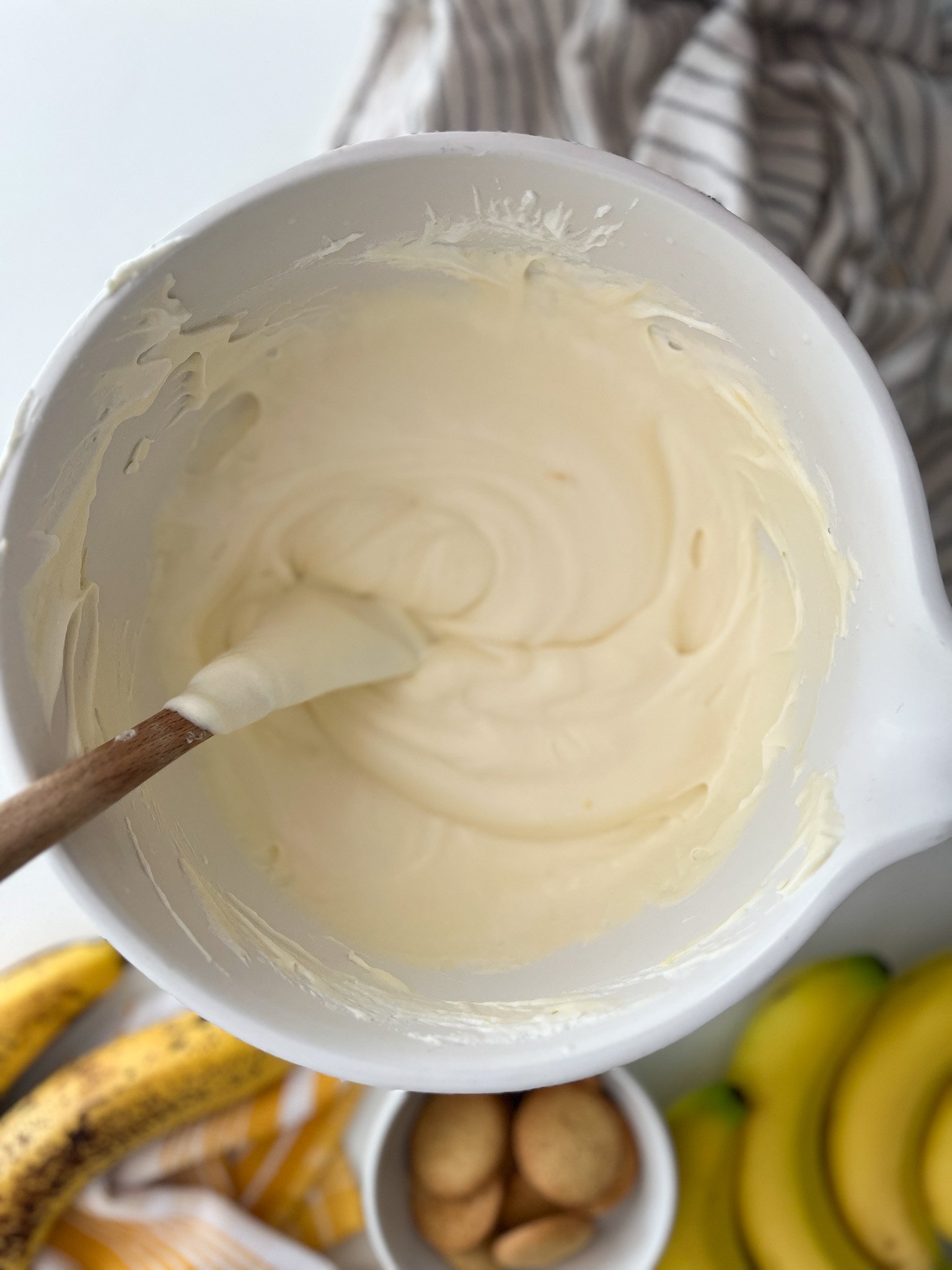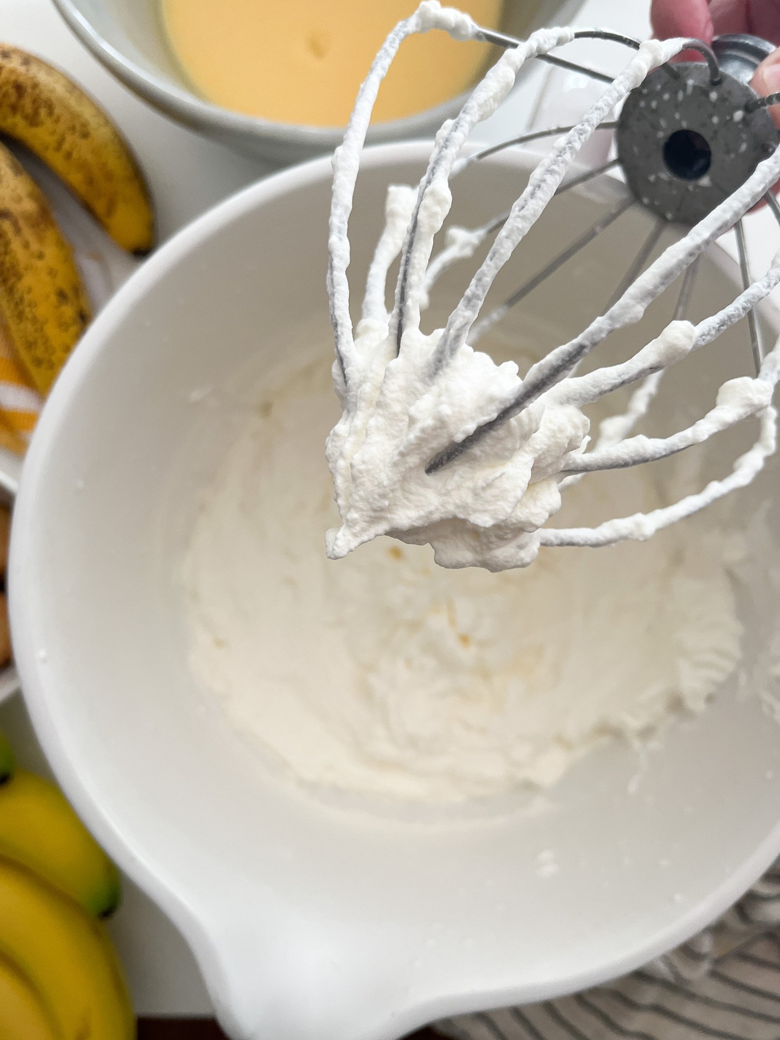 - Using a spatula, slowly fold the pudding filling into the whipped cream. Scoop from the bottom and bring up to the top of the bowl - using that motion, continue to fold until everything is evenly combined.