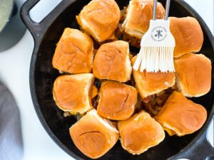 These sliders are perfect for when you want that chain-restaurant-comfort-food but you can’t make it out. Served as individual finger-food makes them perfect for small socially distant get together. Perfect for game-day.