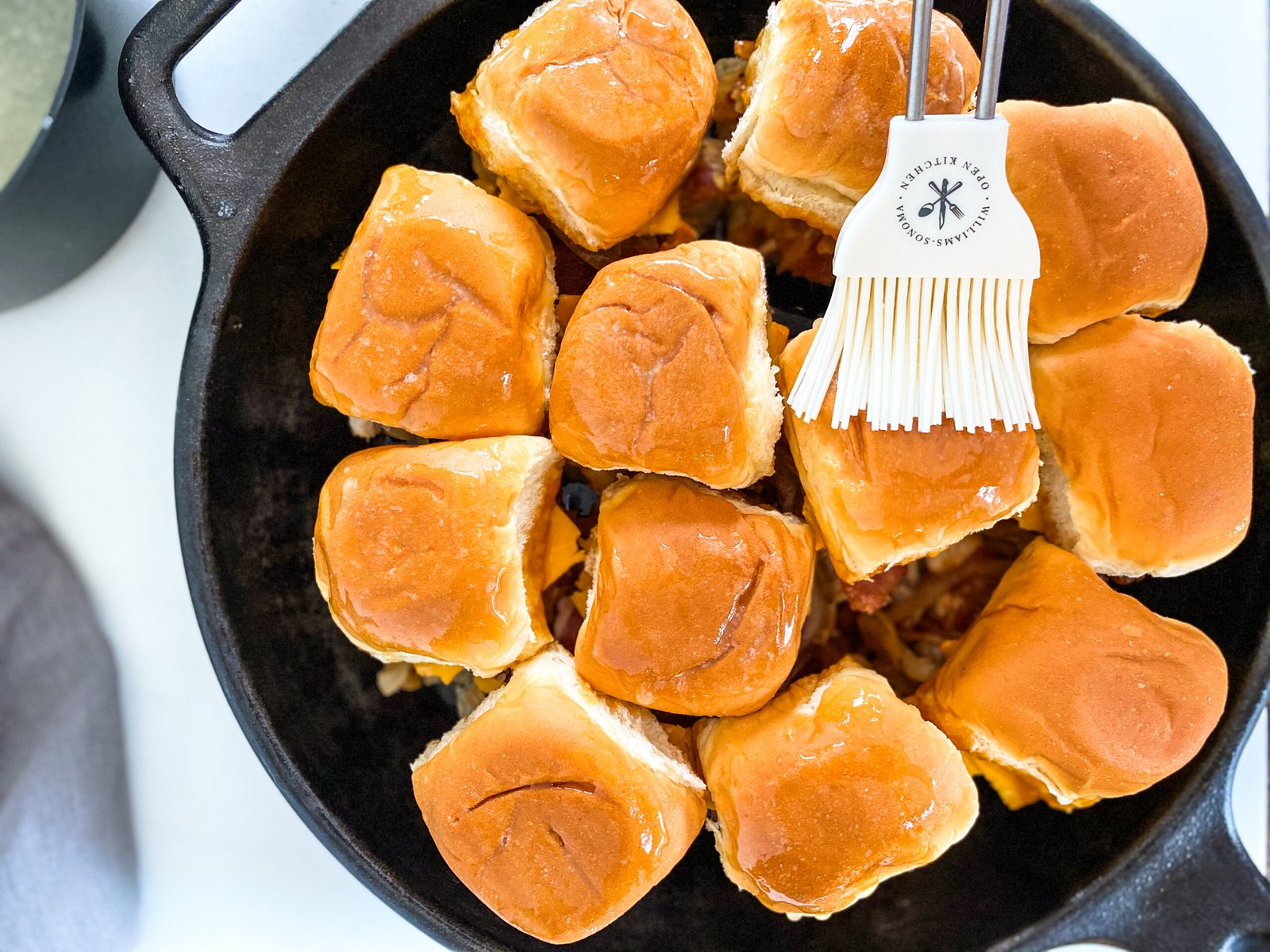 Cheddar cheese: Topped with creamy sharp cheddar cheese put the “smother” in the smothered barbecue chicken slider, acting like the glue to hold it all together.