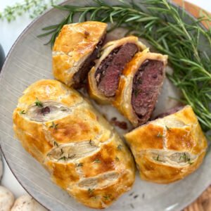 Individual beef wellingtons are usually a 4-6oz single serving. Each person gets their own! It’s a little more work because you have to prep and wrap each individual steak but it’s also a great way to make each person feel special.