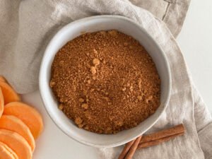 - In a small bowl, which together the brown sugar and cinnamon until evenly combined.