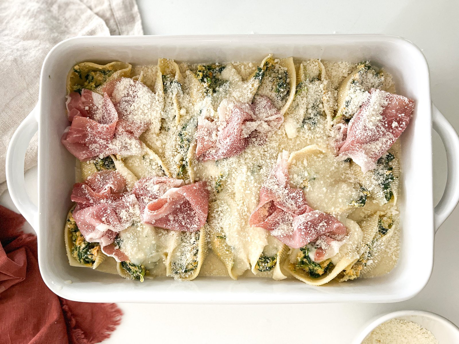Cheesy Butternut & Spinach Stuffed Shells with Crispy Prosciutto