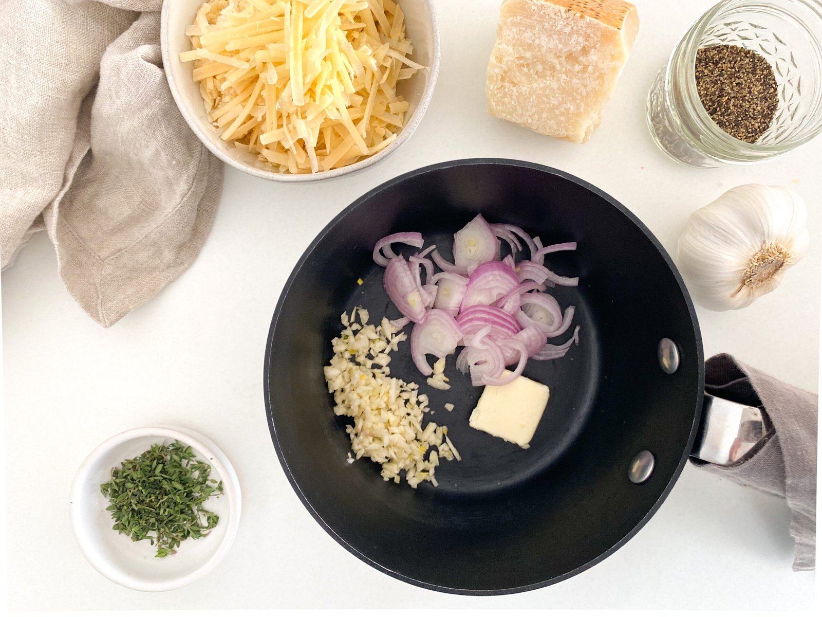 - Over medium heat, let the butter melt, the shallot soften and become translucent. Let the garlic and thyme become fragrant, about 3 minutes or so. Stir frequently to prevent the garlic from burning.