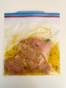 This is a super quick marinade. The marinade can be on the chicken for 30 minutes or all day, depending on your schedule. If necessary, you can add it to your frozen chicken and let the chicken marinate and defrost at the same time.