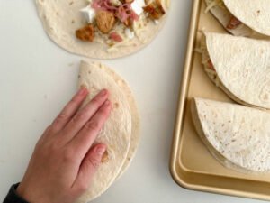 - Fold the tortilla over and set aside, do the same with the remainder of tortillas until all the ingredients are used.
