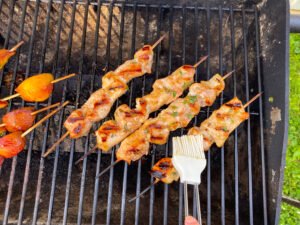2. Never pull the meat off the grill, if try to turn your kabob skewer but the chicken or peach is stuck, let it cook a little longer, you don’t want to pry to tear it off the grill. Once the chicken and peaches are done browning they will loosen up and will easily move if you try to flip them over.