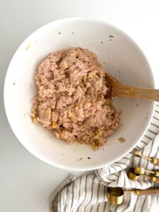 - In a small bowl combine the seasoned stuffing mix, milk and all the seasonings (oregano, thyme, garlic salt, red pepper flakes) Allow the stuffing mix to absorb the milk (about 1-2 minutes)1 cup Seasoned Stuffing Mix, 1/3 cup Milk, 1 tsp Dry Oregano, 1 tsp Dry Thyme, 1/2 tsp Garlic Powder, 1/4 tsp Red Pepper Flakes