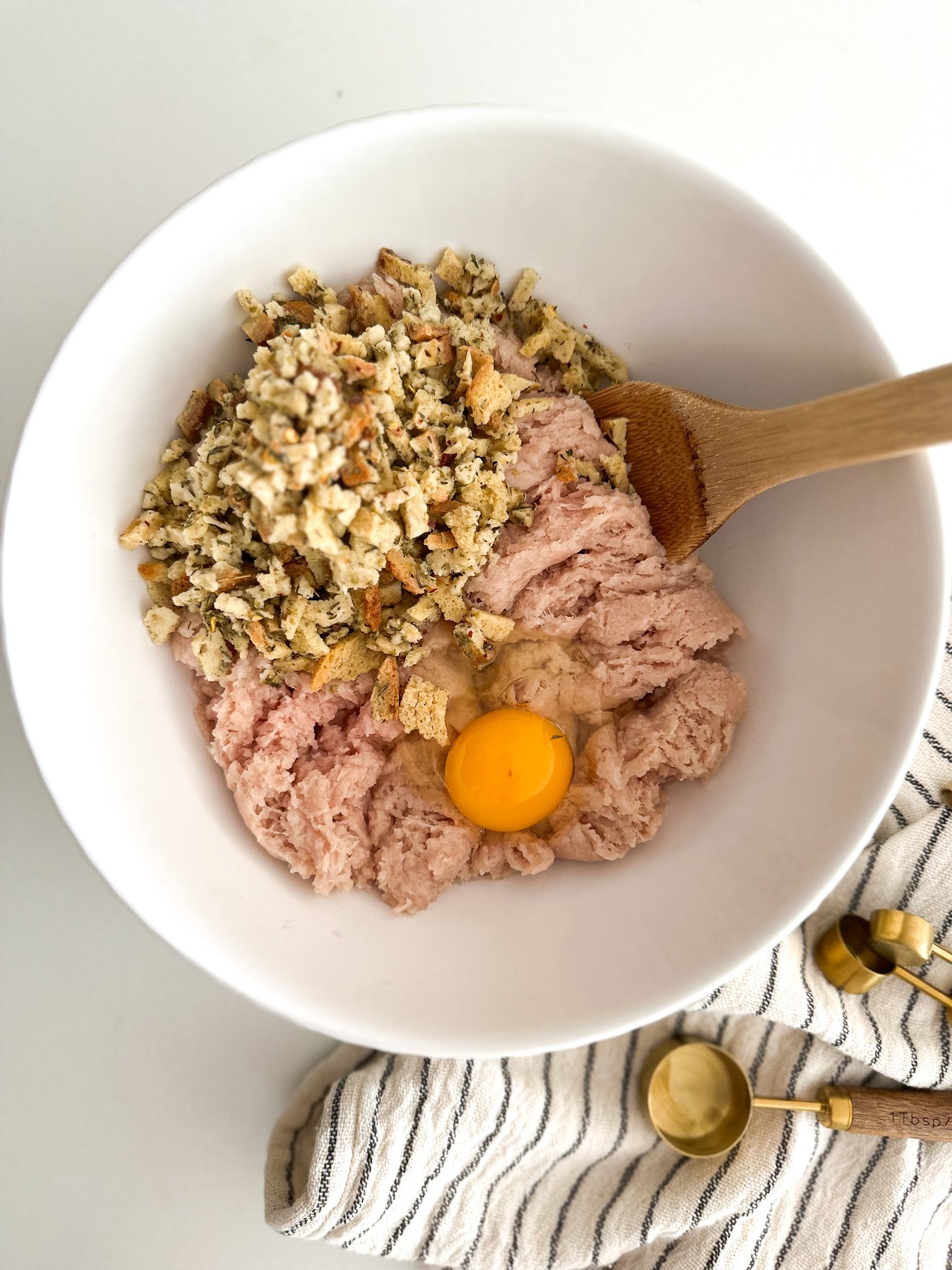 - In a small bowl combine the seasoned stuffing mix, milk and all the seasonings (oregano, thyme, garlic salt, red pepper flakes) Allow the stuffing mix to absorb the milk (about 1-2 minutes)1 cup Seasoned Stuffing Mix, 1/3 cup Milk, 1 tsp Dry Oregano, 1 tsp Dry Thyme, 1/2 tsp Garlic Powder, 1/4 tsp Red Pepper Flakes