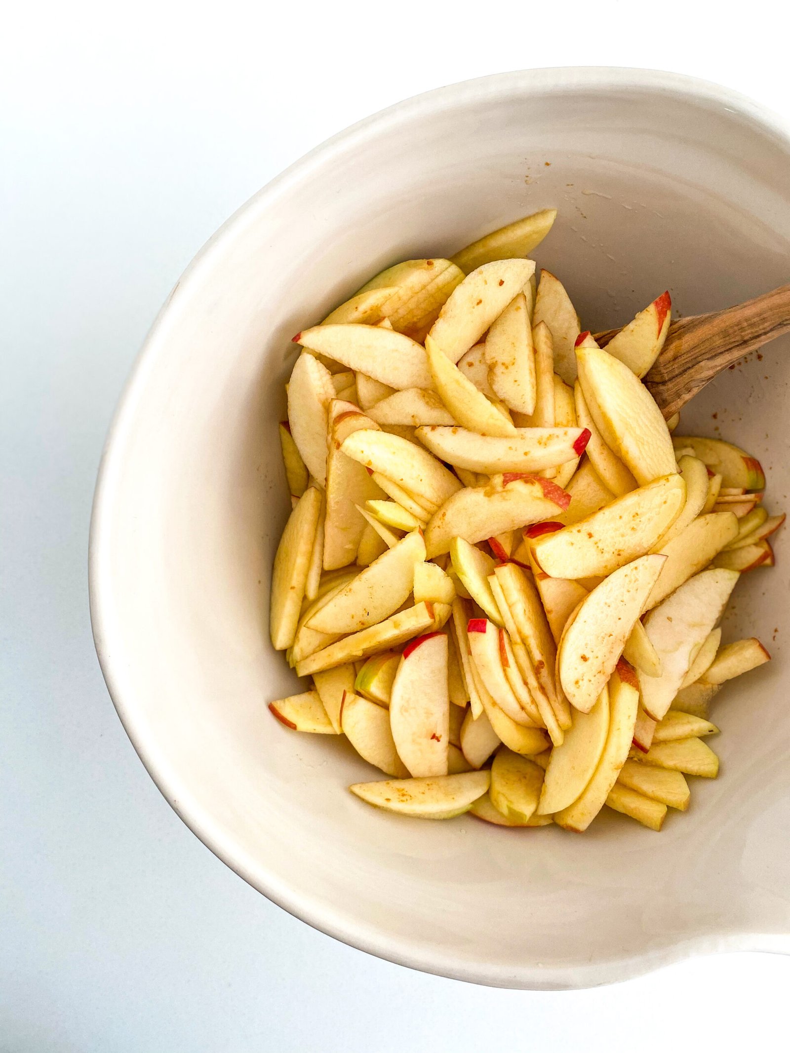 - Add in your flour and toss until the apples are covered.