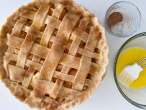 - Top your pie with the top crust. See blog notes for lattice instruction.