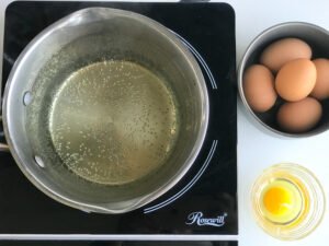 - Fill a pot with water and vinegar. The pot should be deep enough for your eggs to be fully submerged.