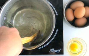 - With a spoon stir the water to create a moving swirl. This is so when you drop your egg it doesn’t fall directly to the bottom of the pot and it also helps the white wrap around the yolk.