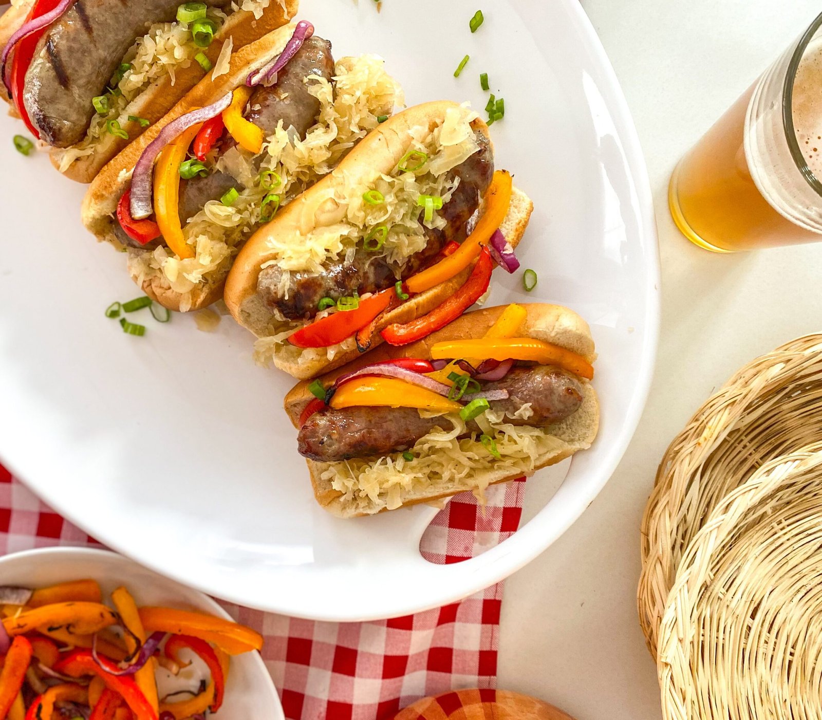 Nothing beats the classic brats and peppers. Level it up for dad and throw on some IPA infused sauerkraut.