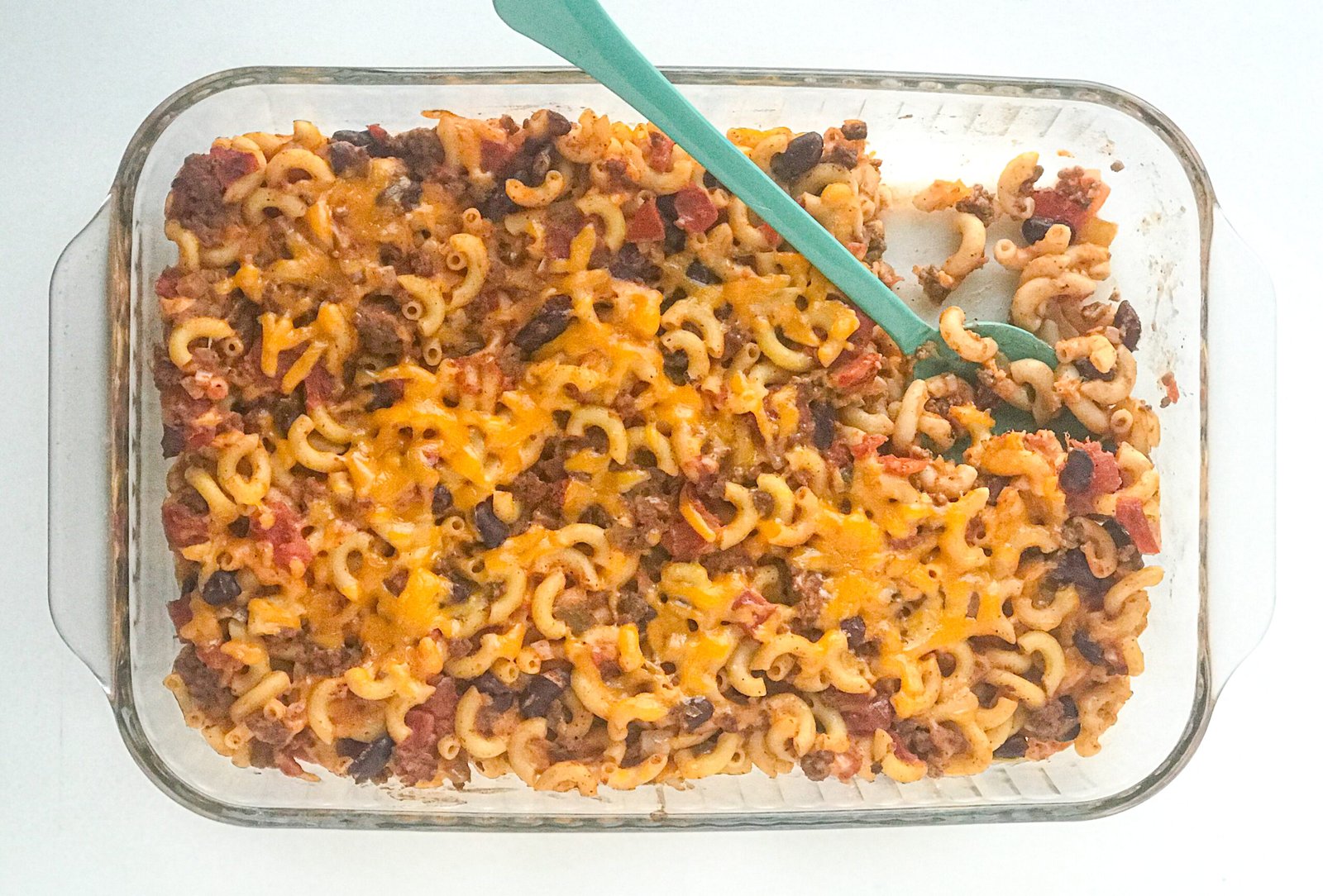 In need of a super quick and easy dinner? This easy cheesy chili mac casserole does the just the trick! Cozy chili mixed into cheesy macaroni and baked for a delicious crispy top is perfect for any chilly weeknight dinner. The best part, you can make it your own by using any chili recipe you love.