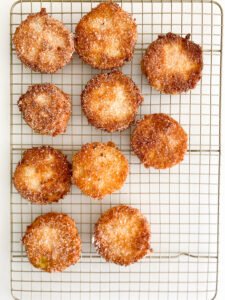 - Once golden brown, remove from the pan and place on a drying rack. Immediately sprinkle with salt while hot and let them cool.