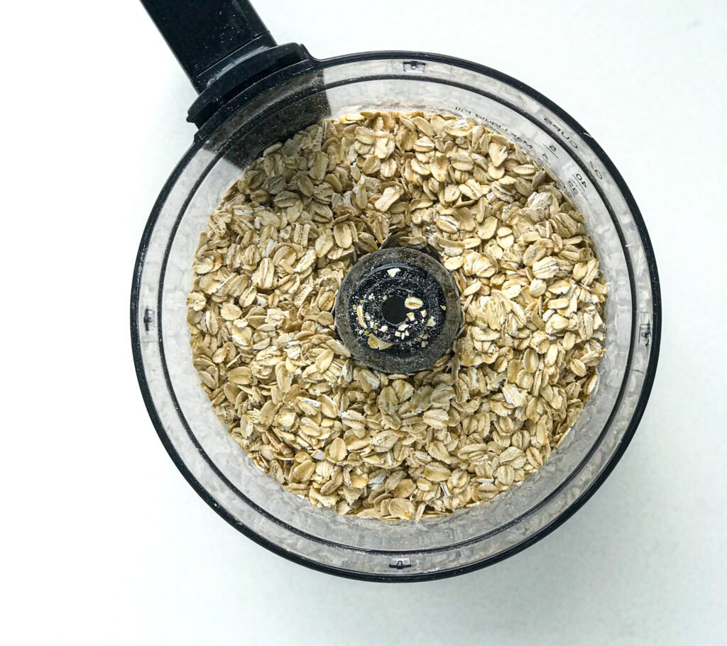 No special flour purchase is necessary for these pancakes. The trick to this recipe is is to use the rolled oats oatmeal you already have in your pantry. Measure 3 cups out and pulse it in a dry food processor or blender until it’s a flour consistency, this will take about 3-5 minutes.