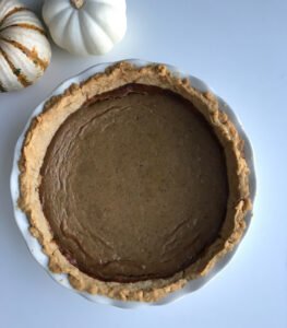 Pumpkin pie is a holiday staple. My grandma makes the same pumpkin and apple pie every year, the exact same pies every year. Her pumpkin pie is a family favorite and one of her most requested desserts and loved by my husband. For me, I’m more of an apple pie lady, I’m not usually a pumpkin lover, however this creamy pumpkin pie is delicious!