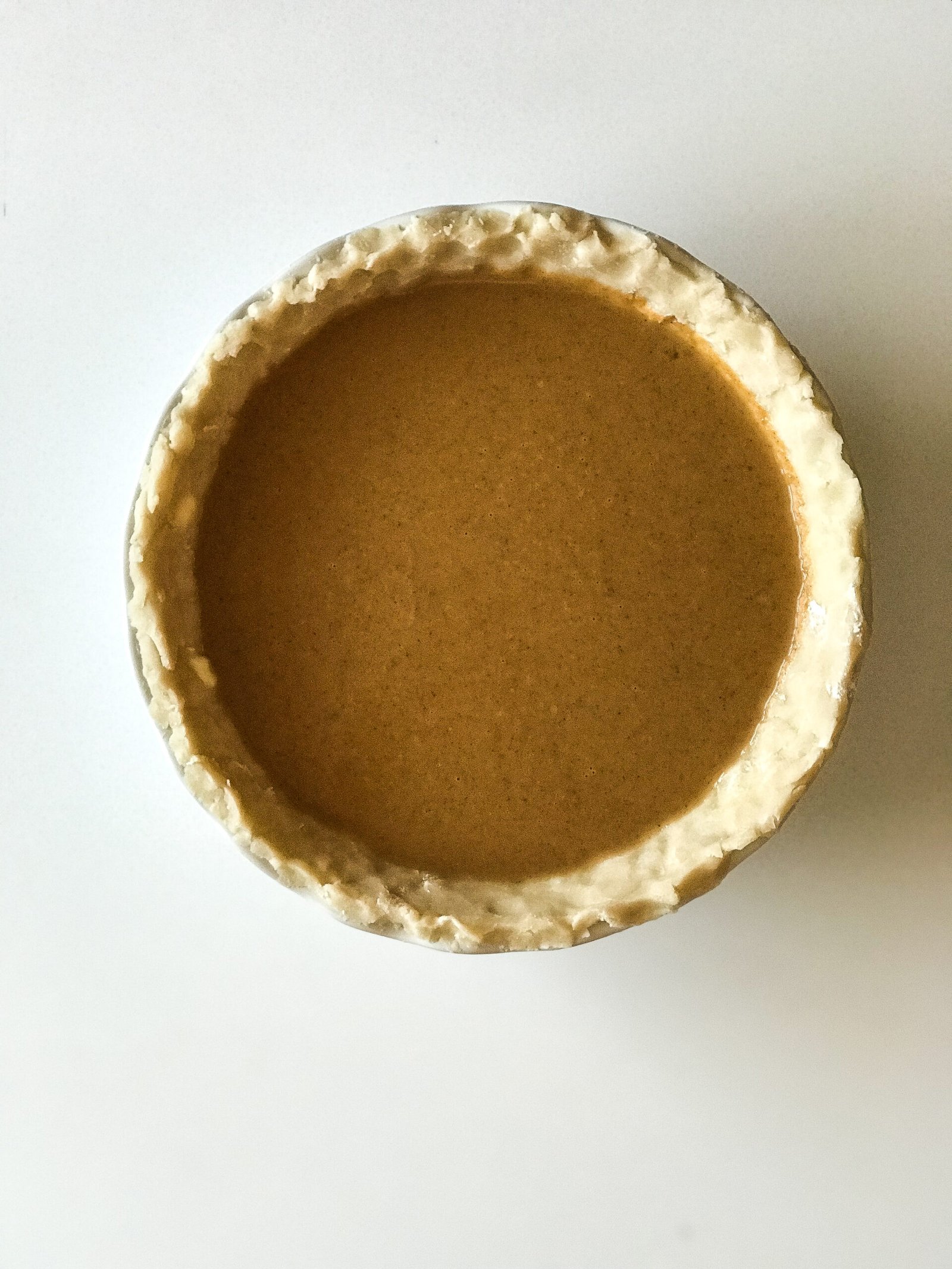 - Take out your prepared pie crust and pour this mixture into the pie pan.