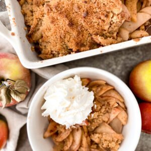 My Granny had THE BEST APPLE crisp recipe, and I’m so thankful that I now have it, every time I make it, I’m filled with sweet memories of her. The apple crisp is easy peasy, perfectly sweet and tart, pure comfort.