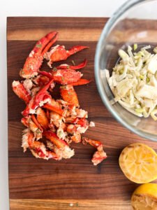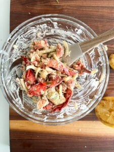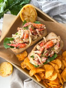 Make prep easy with already cooked real lobster meat from the frozen food section of the grocery store or if you’re feeling it, grill up some lobster tails.