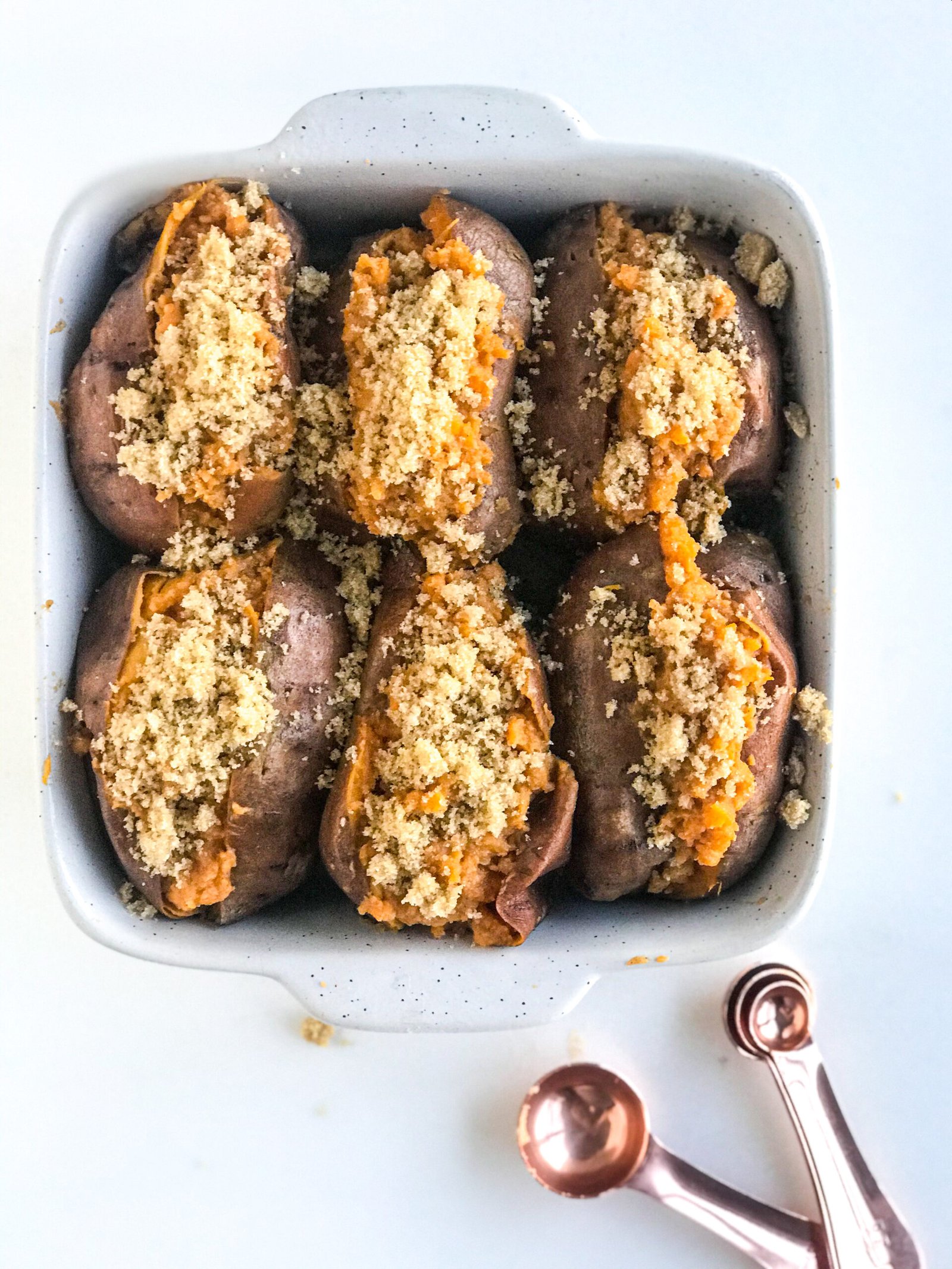 Holiday Spice Twice Baked Sweet Potato Casserole - oven prep