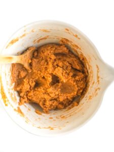 • In a bowl, hand mash together your sweet potato, butter, brown sugar, vanilla extract, Holiday Spice Mix.