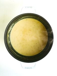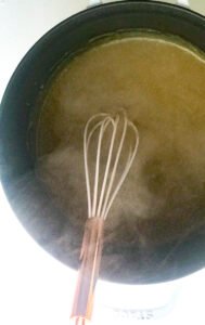 - In a large pot, melt the butter and add in the flour to create a roux. The consistency should be like loose wet sand. Cook for about 2-3 minutes occasionally stirring to prevent the flour from turning brown.