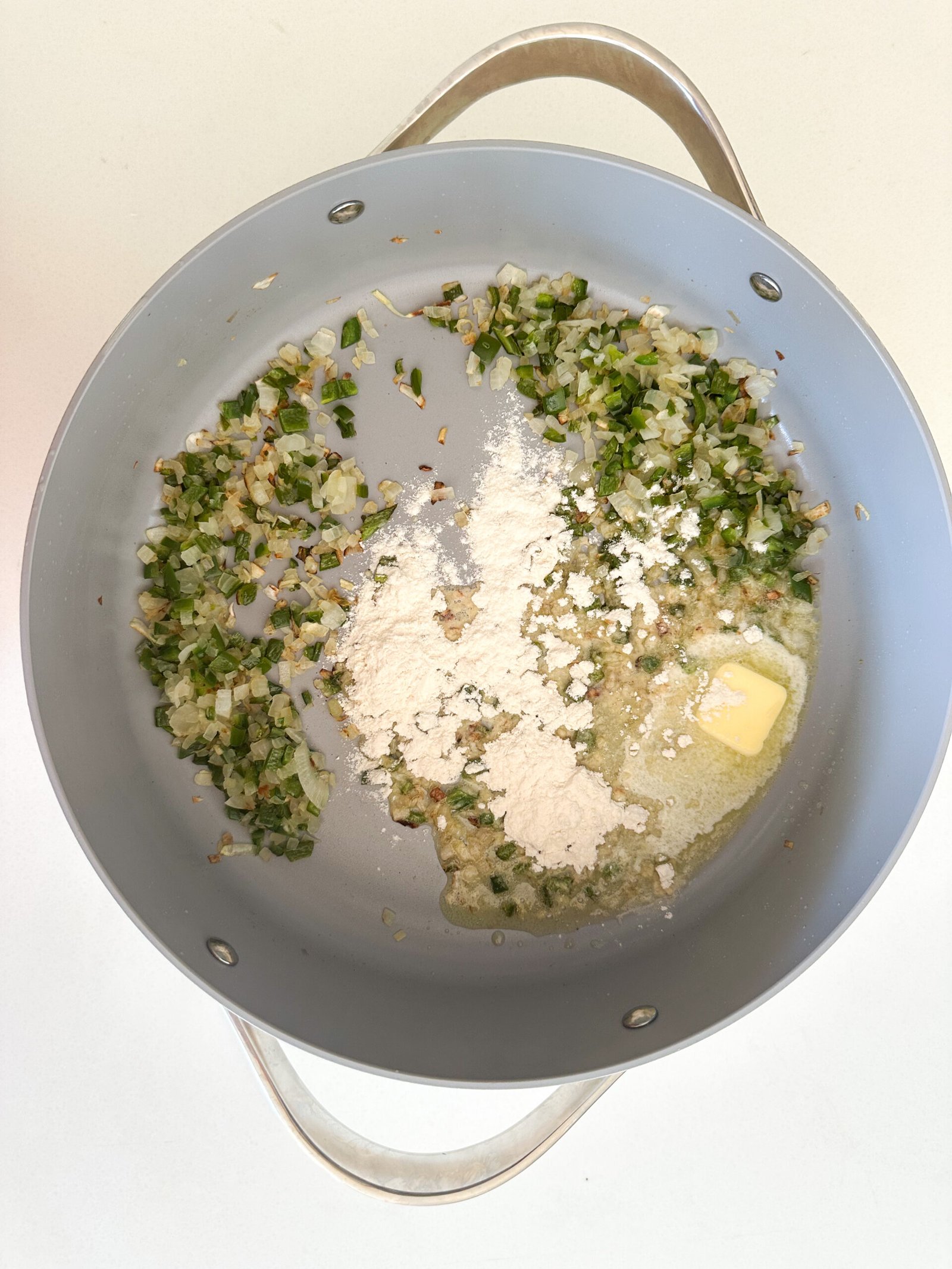 - Add in the butter and flour. Stir until combined and thick.2 TBSP Butter, 2 TBSP Flour