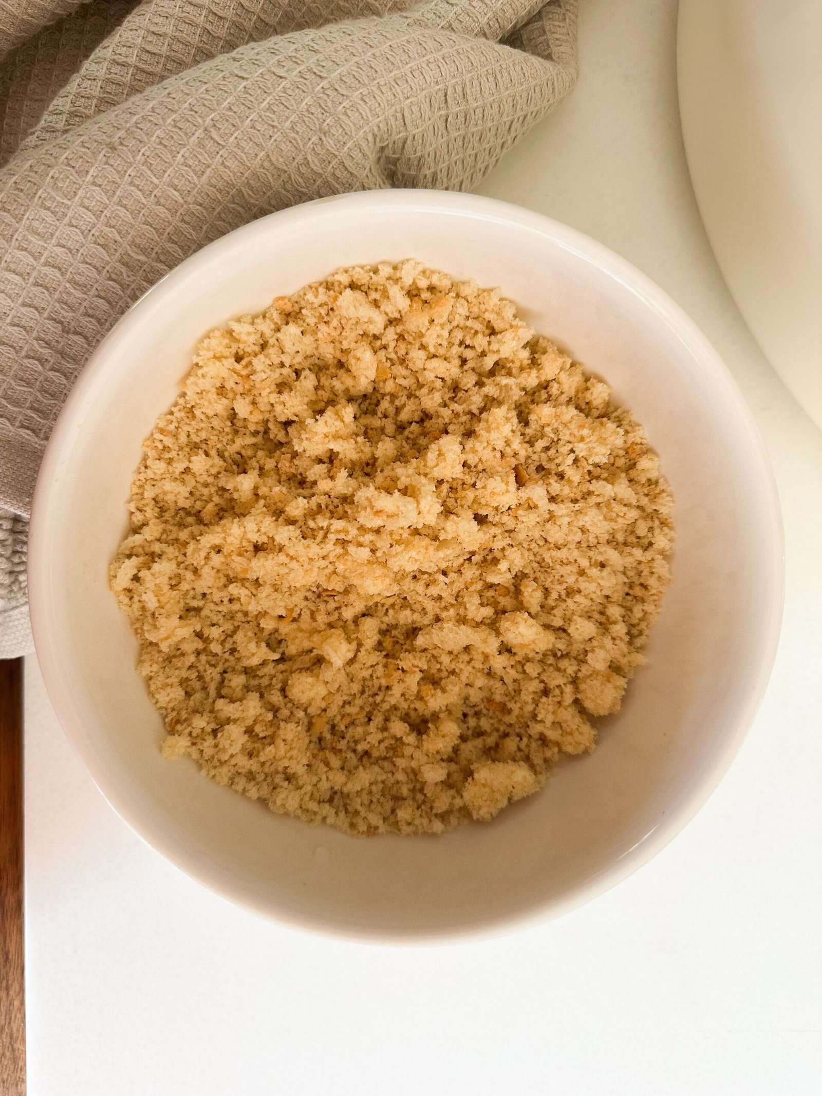- In a small bowl, add the breadcrumbs and butter. Using a fork or your fingers, mash together until combined.1 cup Panko Breadcrumbs, 1 TBSP Butter