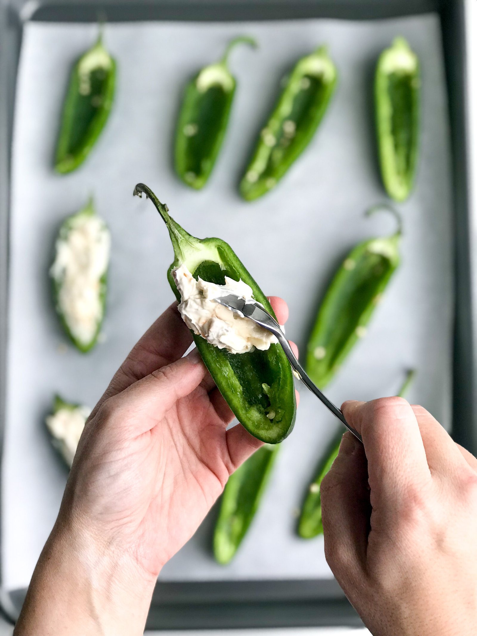 It took me until my adult life to appreciate a good jalapeño popper and now they are my #1 go-to for a quick-please-the-crowd kind of snack. To me it’s important that a jalapeño popper meet four goals to be tasty: