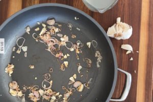 • Using the same pan, add your shallot, garlic and ¼ tsp of salt. Over medium heat let the shallot and garlic cook until soft and fragrant about 2-3 minutes.