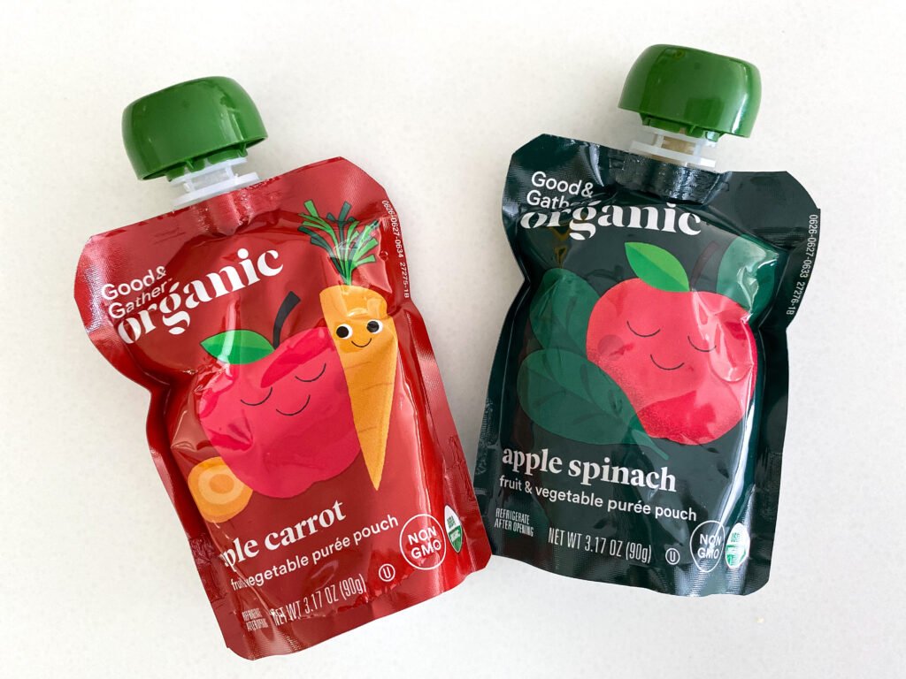 Target Brand Good and Gather – Applesauce pouches. Apple & Carrot, Apple & Spinach and Apple, Blueberry and Beet are the household favorite flavors.