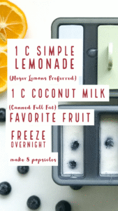 Looking for a cool fun summer snack? These lemonade popsicles are just the thing! Refreshing lemonade mixed with coconut milk and your favorite fresh fruit will keep you cool all summer long. Perfect for kids too!