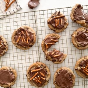 These pretzel Nutella chocolate chip cookies are a quick way to level up those grocery store break-apart cookies we all love. Crunchy, salty, nutty and sweet. They are ridiculously easy to make and dangerously delicious.