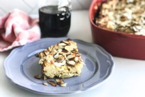 There is nothing better than waking up in your comfy PJs with a hot cup of coffee and having warm buttery sweet french toast on the weekend. Nothing. Except maybe eating it in bed. This almond french toast casserole leaves all the heavy lifting to the night before, leaving the morning to pure-sunny-weekend-bliss.