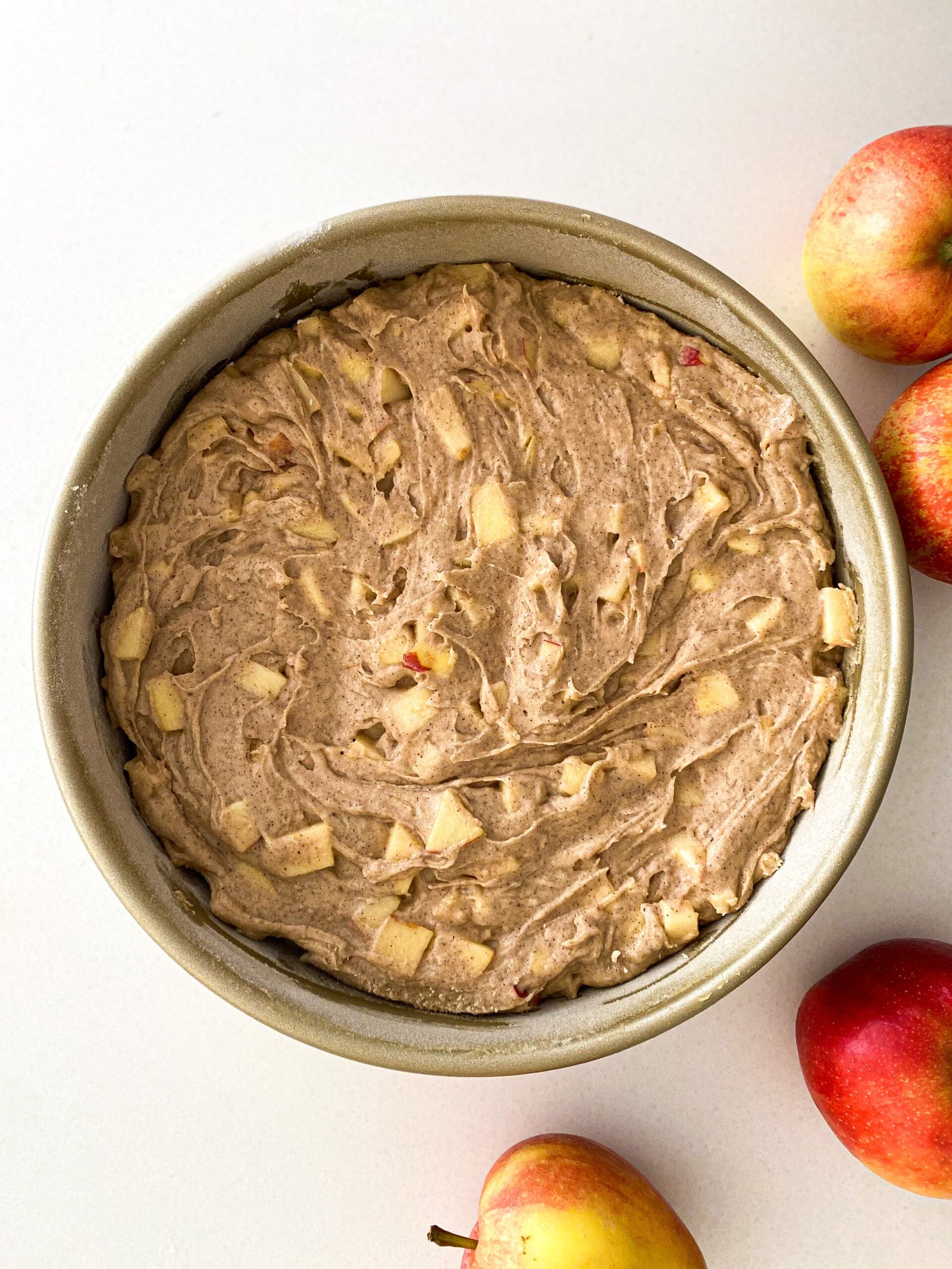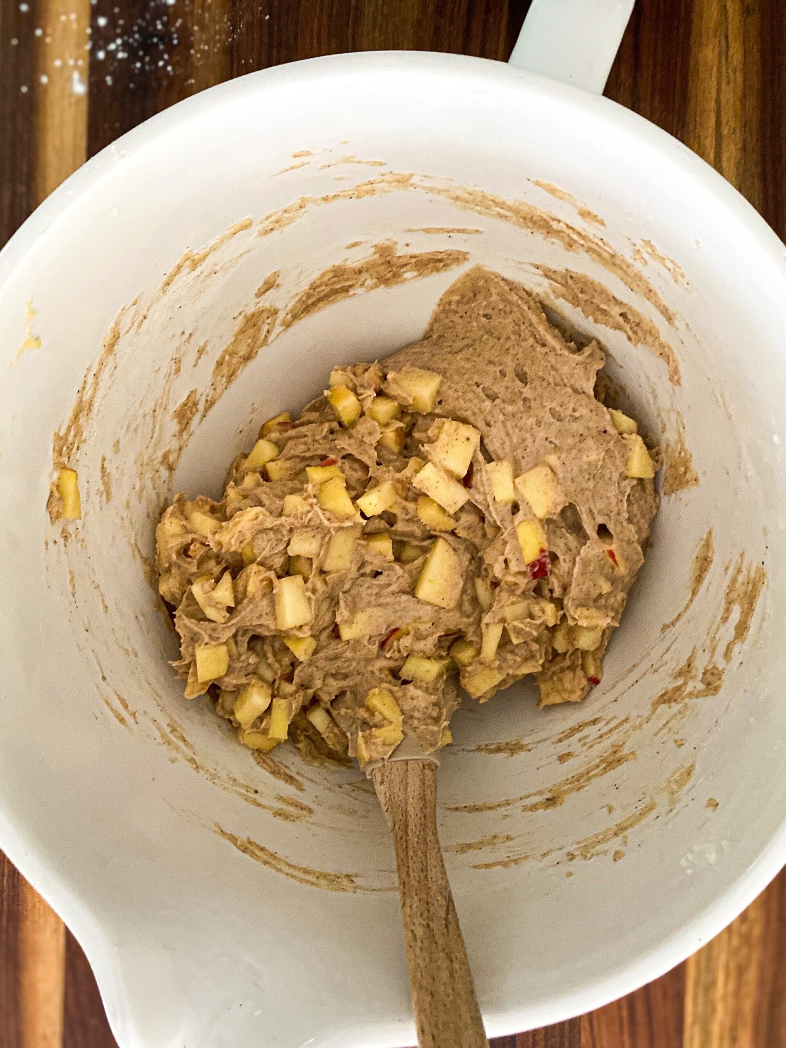 - Carefully fold in the diced apples, try not to over mix the batter.