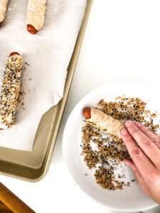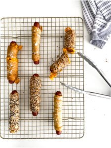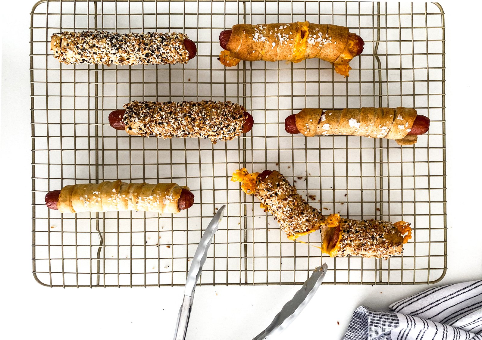 *If you are adding cheese, wrap the cheese around the hot dog first and then roll into your pizza dough.