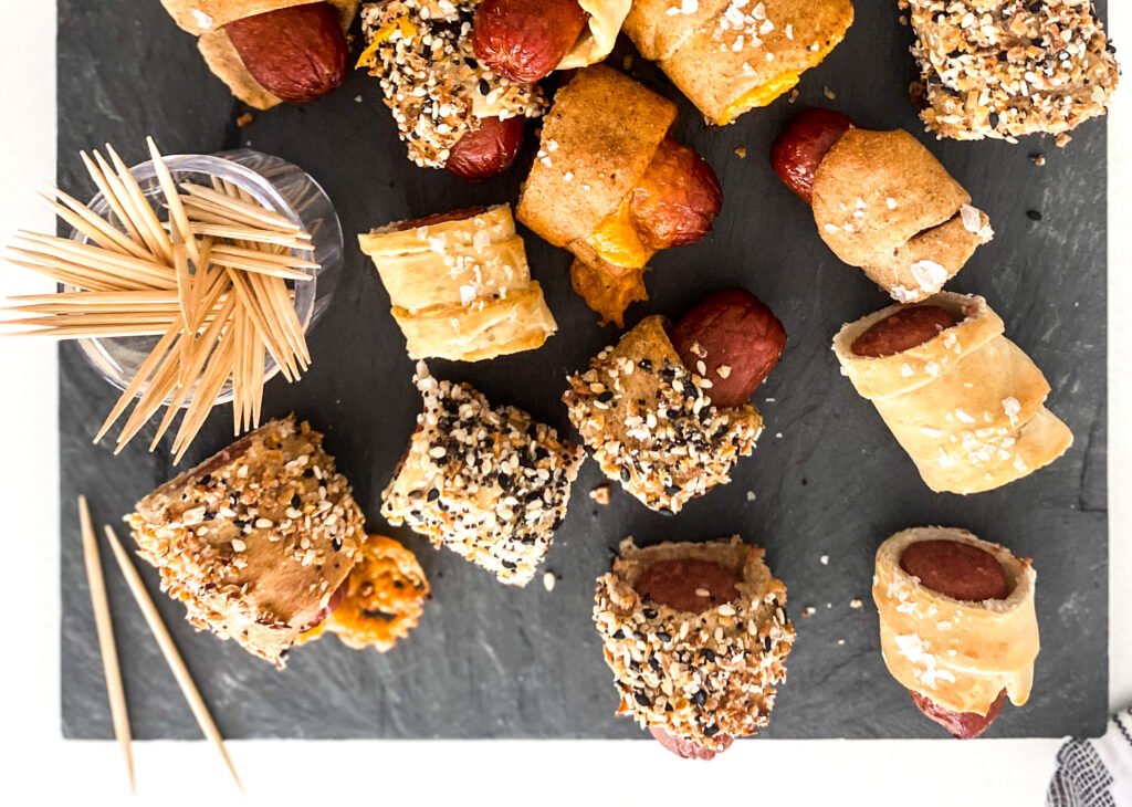 So simple to make, you actually wrap regular size hot dogs in pizza dough and then once they are baked, you can cut them into fourths so that they are bite-size and ready to share.