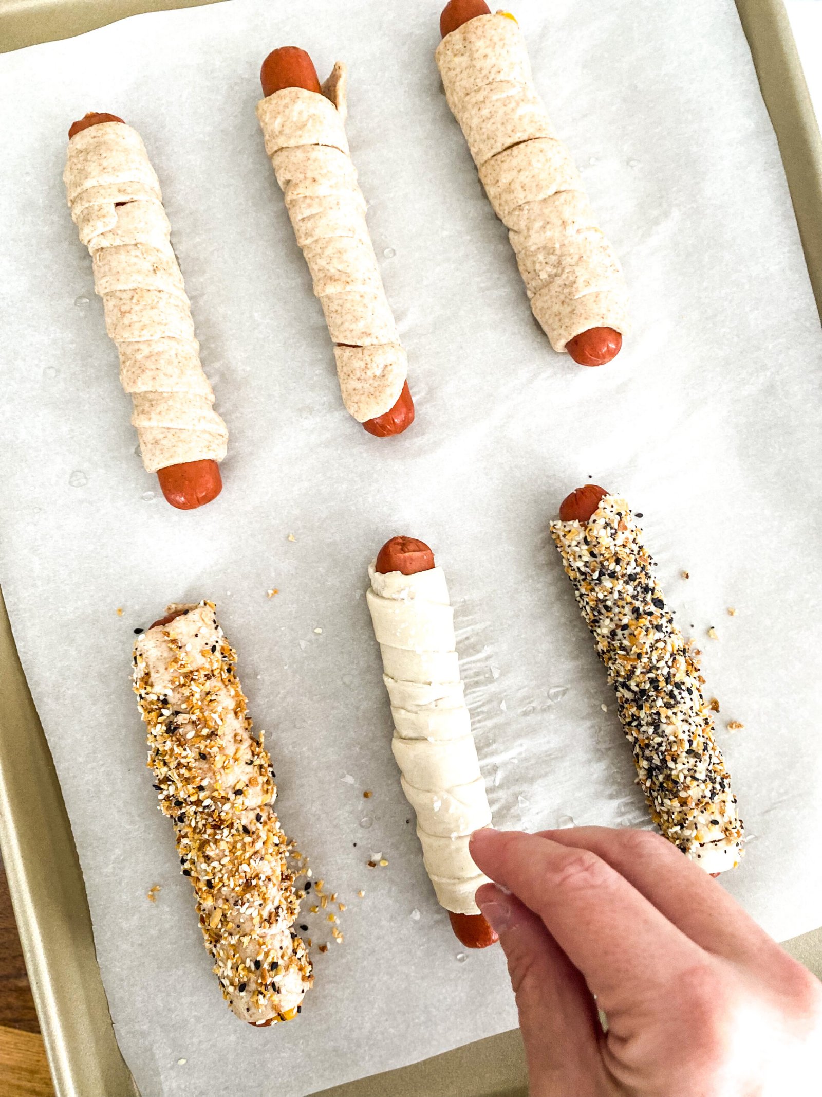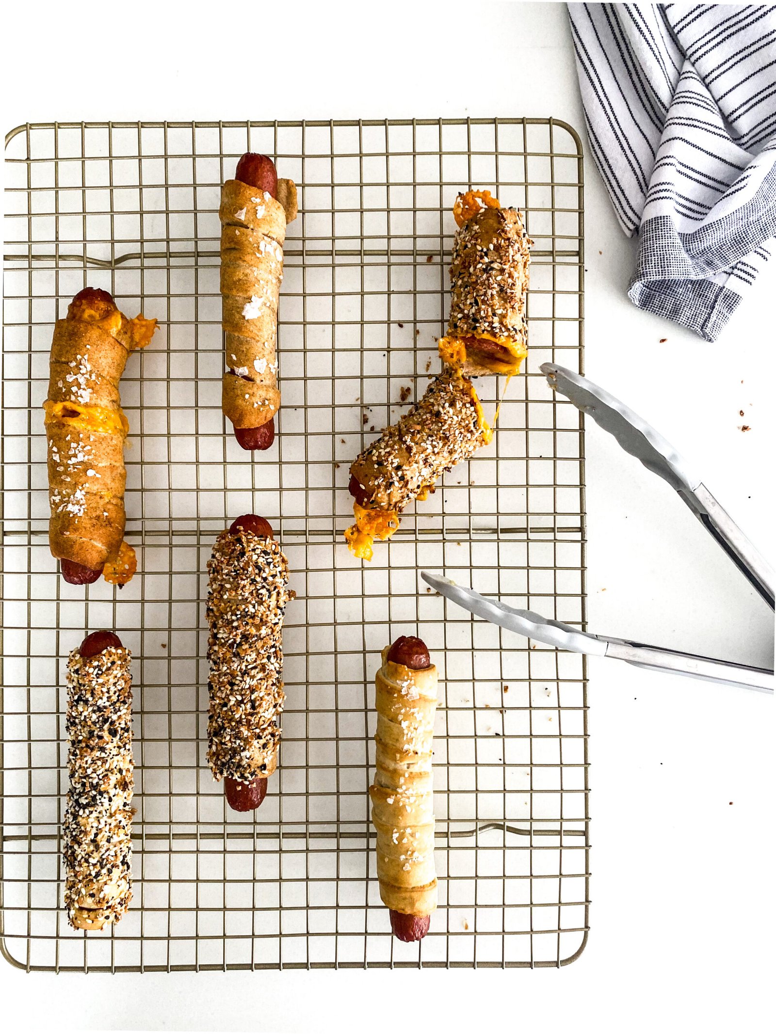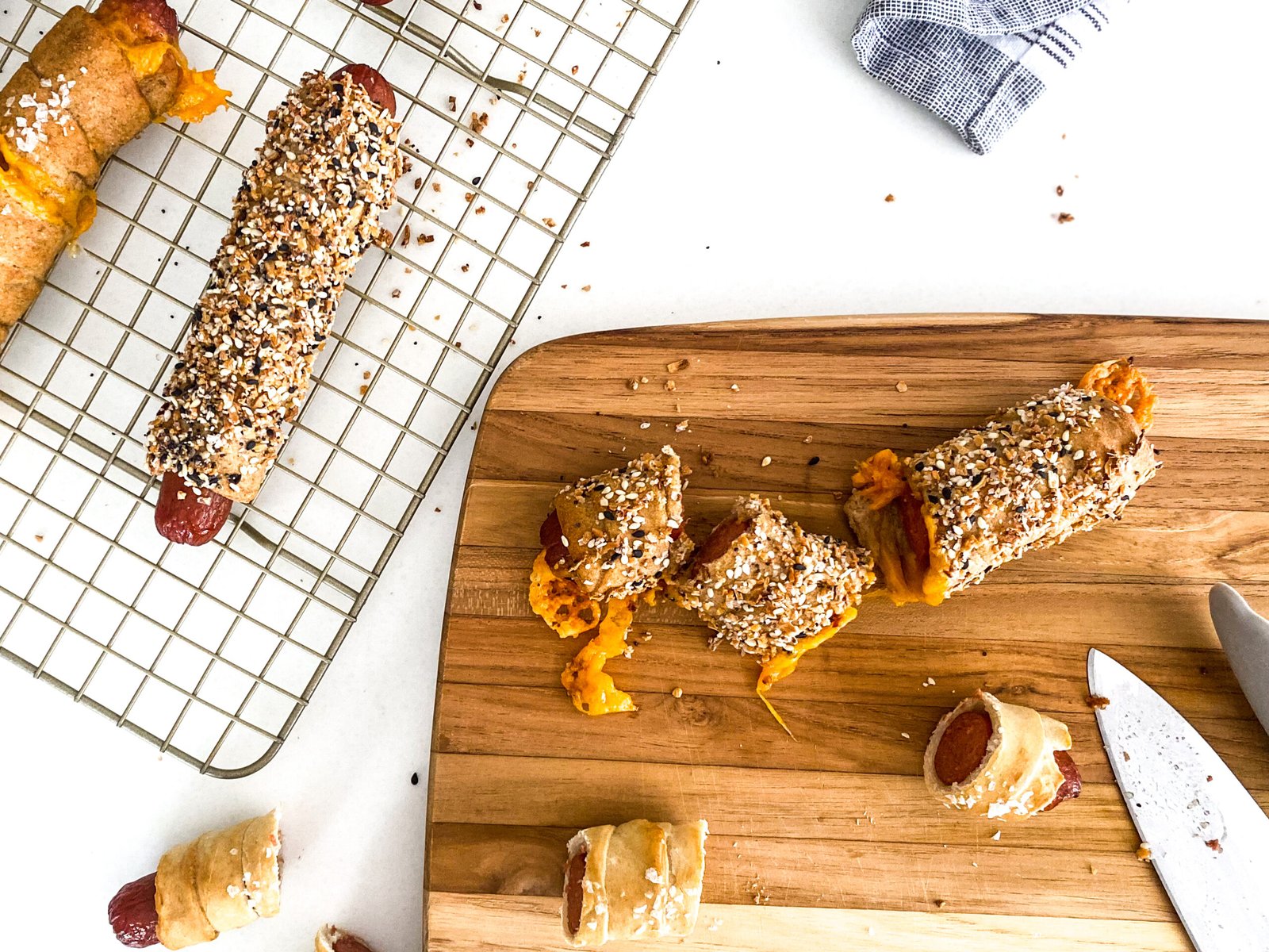 *If you are adding cheese, wrap the cheese around the hot dog first and then roll into your pizza dough.