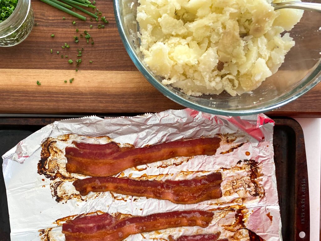 - 2-3 Slices Crispy Cooked Bacon – chopped into bits (optional)