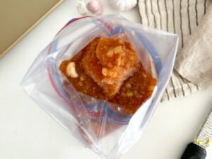 This recipe has a marinade to keep the chicken tender and give it an extra boost of flavor. It’s a quick marinade that you can do while the chicken defrosts. Simply put it together the night before or the morning before you start your day.