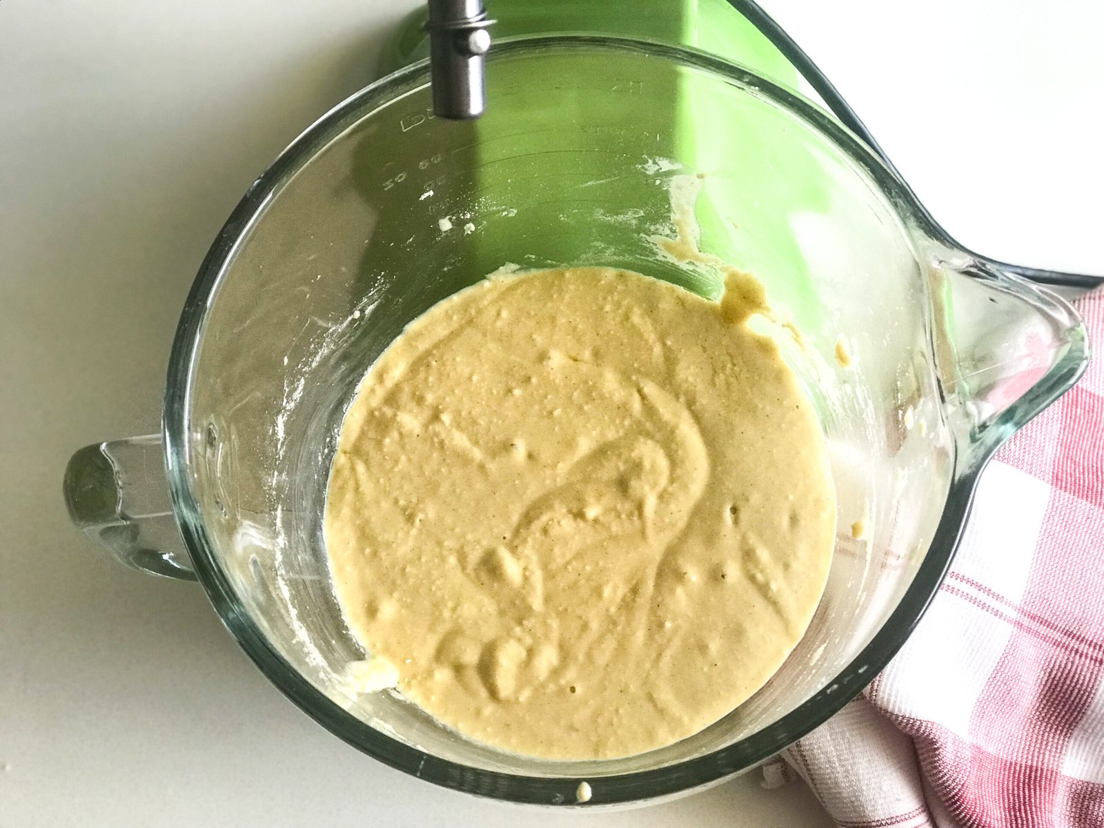 - After it’s completely combined, while your kitchen aide is on, drizzle in your 2 TBSP of olive oil and continue to mix until evenly distributed.