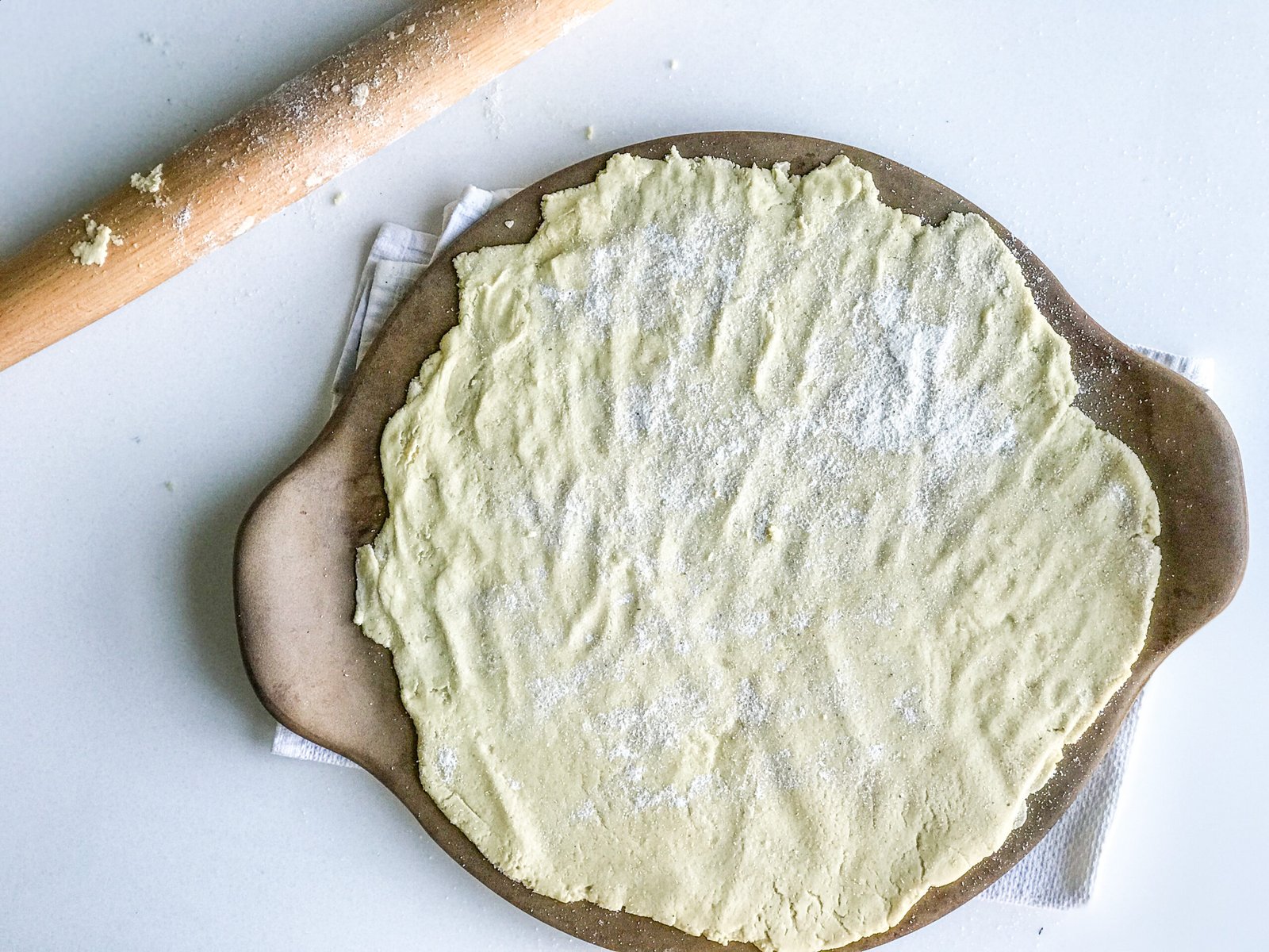 - After it’s rolled out, sprinkle on another handful of cornmeal and drizzle on olive oil, these two things will help keep the crust crispy and sturdy.