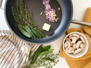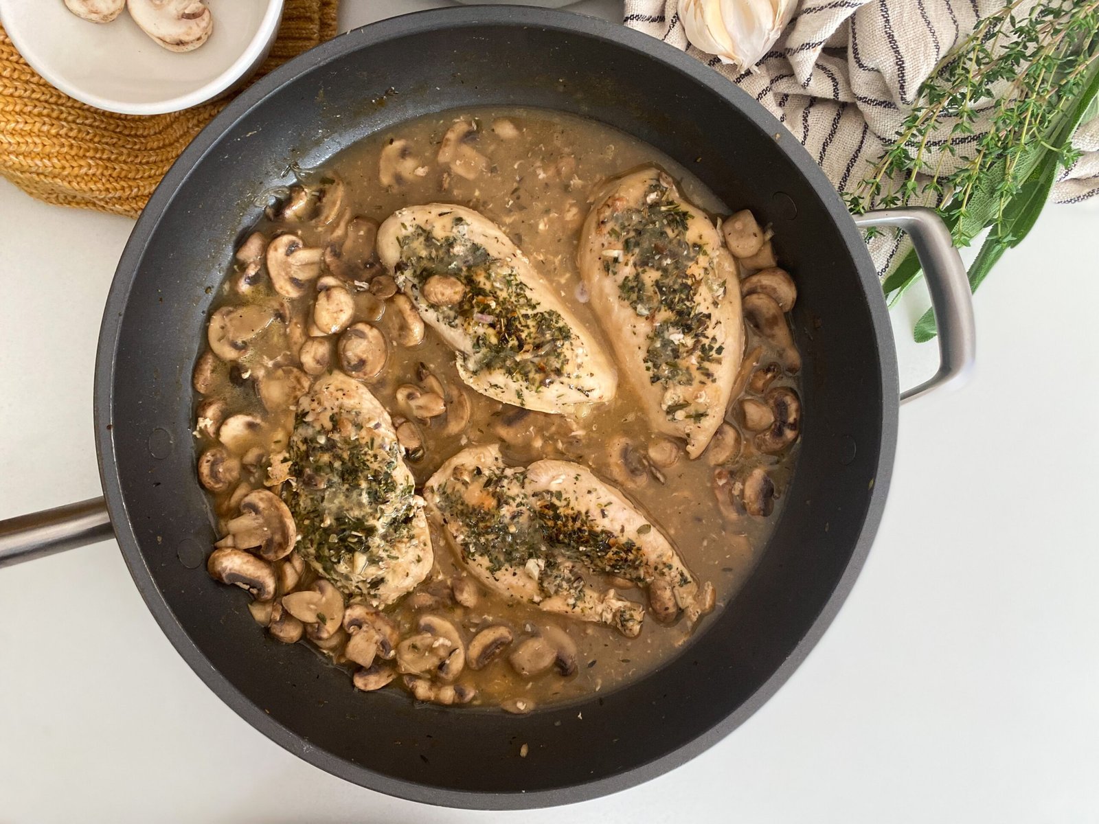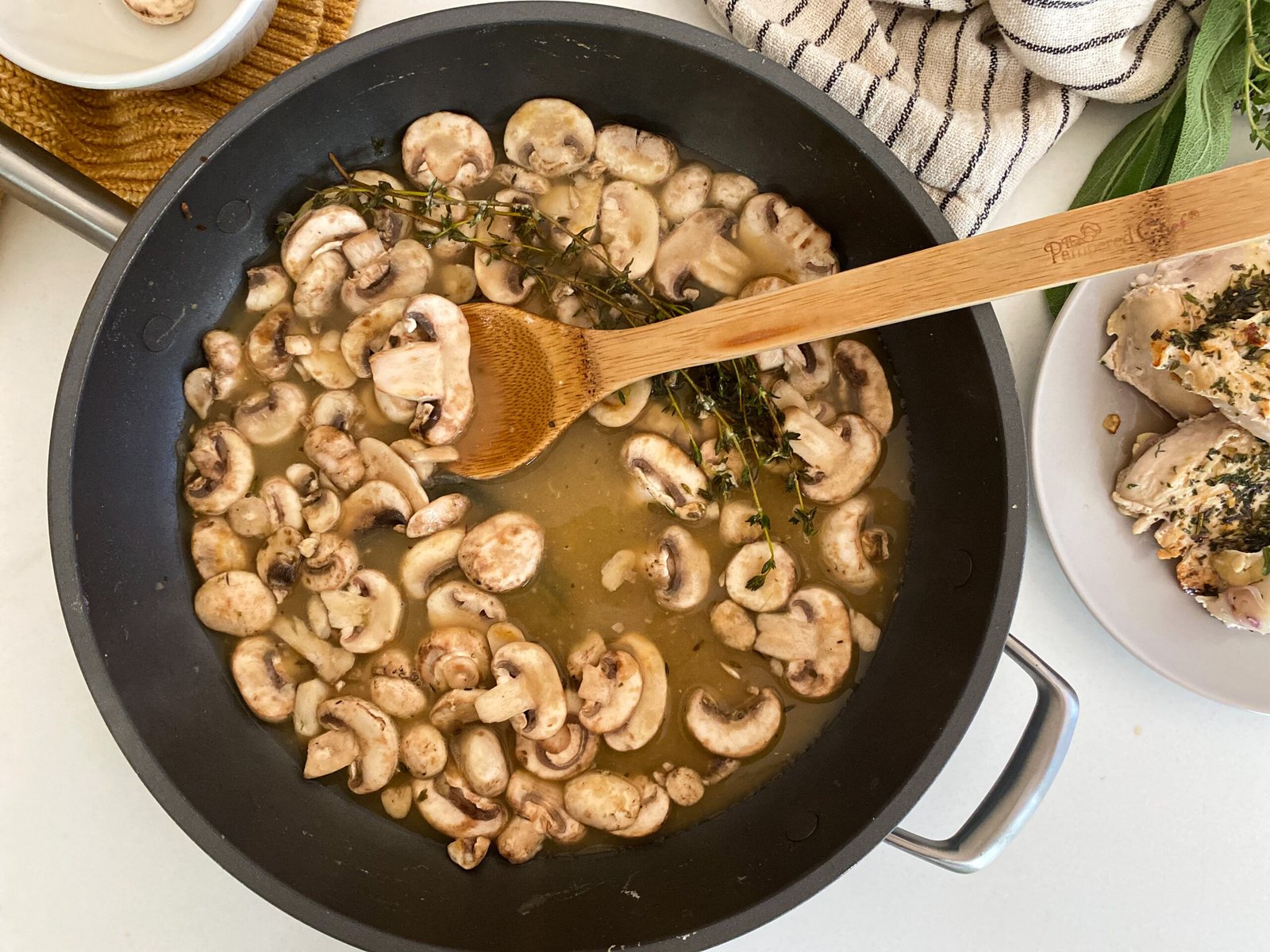 Mushrooms are earthy but they have such an amazing flavor. It’s hard to describe, in the culinary field they are considered to be umami, which is part of the 5 tastes groups (salty, sweet, sour, bitter, umami). Umami is described as the “wow factor” it’s good, but we can’t quite explain why. Mushrooms give this simple skillet chicken pan sauce a robust earthy savory taste. It’s undeniably delicious.